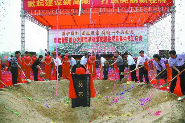 2019年12月16日 臨桂新區(qū)北區(qū)湖塘水系景觀綠化工程舉行開工儀式