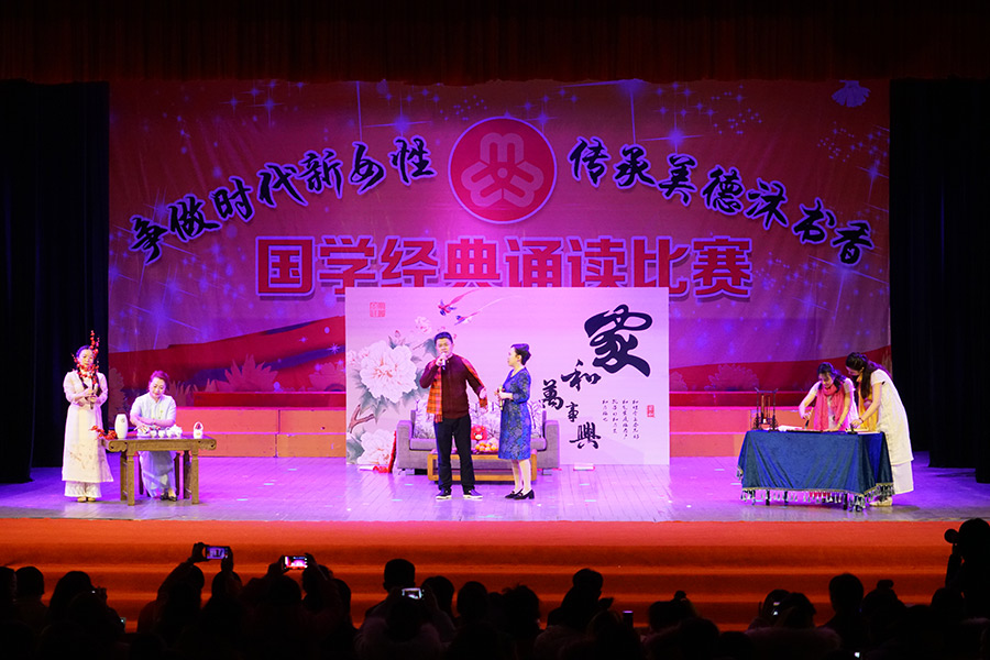 在三八婦女節(jié)來臨之際,3月5日臨桂區(qū)婦聯(lián)在臨桂區(qū)影劇院舉辦了“爭做時代新女性·傳承美德沐書香”國學經(jīng)典誦讀比賽活動。作為“三八”婦女節(jié)系列活動的第一彈,由臨桂新區(qū)管委會牽頭組織,臨桂新區(qū)管委會機關(guān)工會與新城投資集團工會聯(lián)合組隊參加比賽,音樂情景朗誦節(jié)目《家和萬事興》喜獲二等獎。