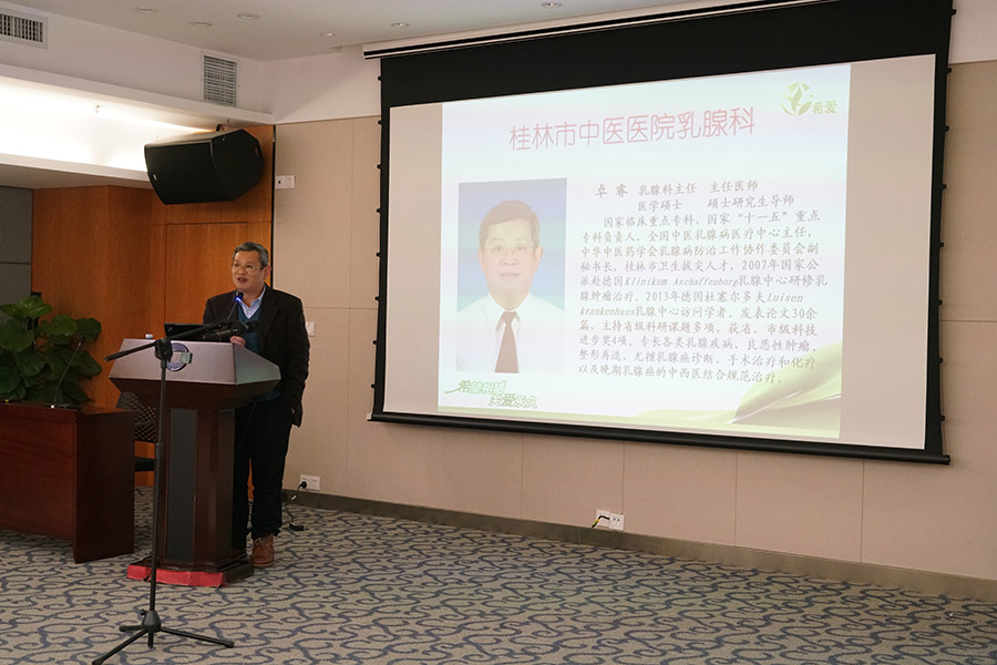 乳腺健康知識(shí)講座暨“兩癌”保險(xiǎn)推介會(huì)邀請(qǐng)了中華中醫(yī)藥學(xué)會(huì)乳腺病分會(huì)副主委、廣西醫(yī)師協(xié)會(huì)乳腺病專業(yè)委員會(huì)副會(huì)長(zhǎng)、桂林中醫(yī)院乳腺科主任卓睿,臨桂區(qū)婦聯(lián)副主席黃金蘭,中國(guó)人壽臨桂分公司經(jīng)理陳群燕三位嘉賓老師到場(chǎng)講授。