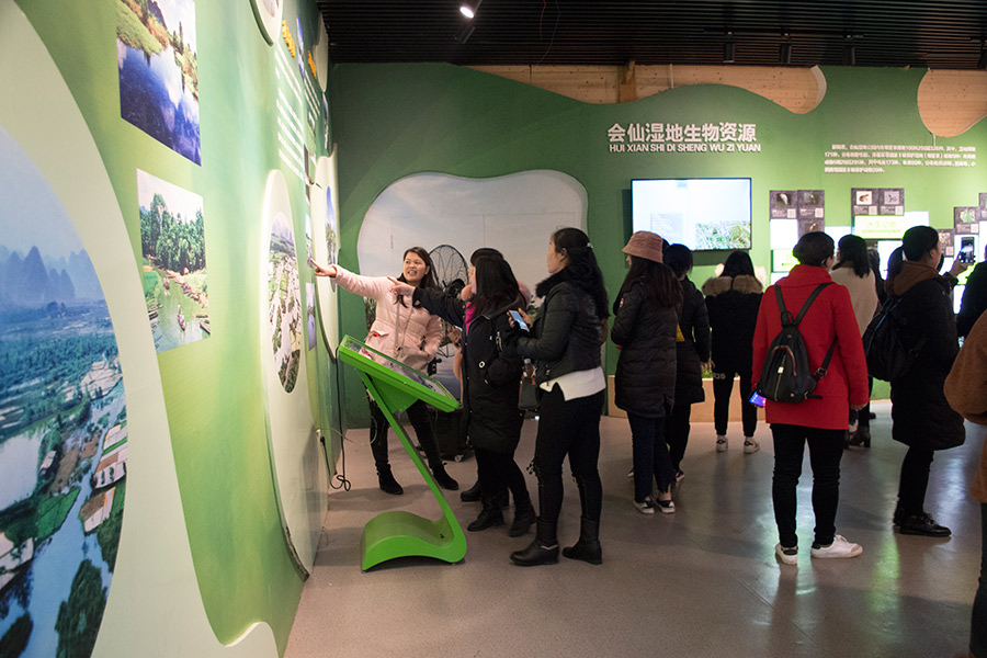 圖為婦女同志們參觀會(huì)仙濕地宣教館