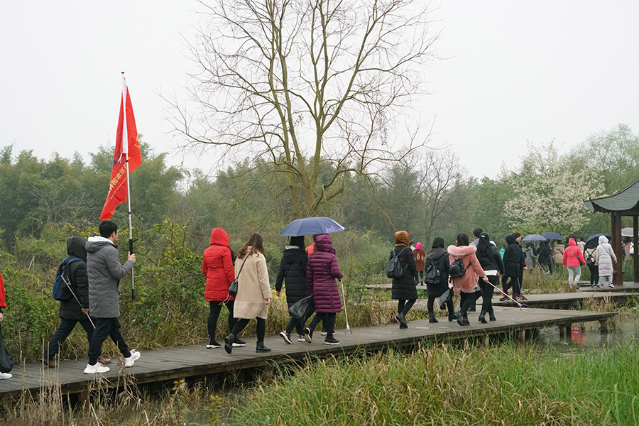 圖為“為會(huì)仙濕地洗臉”環(huán)保徒步活動(dòng)現(xiàn)場(chǎng)