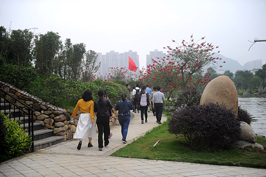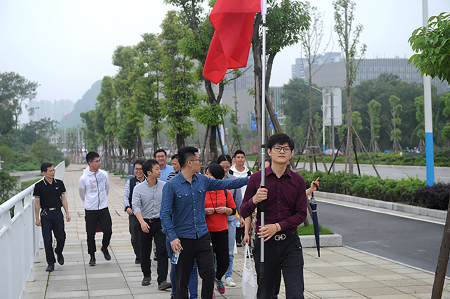 2018年5月4日,是“五四”青年節(jié),也是桂林市臨桂新區(qū)核心區(qū)水系正式通航的日子。新城投資集團(tuán)為慶?!拔逅摹鼻嗄旯?jié),以水系通航為契機(jī),組織集團(tuán)公司全體團(tuán)員開展環(huán)“新區(qū)核心區(qū)水系”的徒步活動(dòng)。集團(tuán)公司黨支部副書記、副總裁鄧仁友,工會(huì)主席譚力源等領(lǐng)導(dǎo)參加本次活動(dòng)。