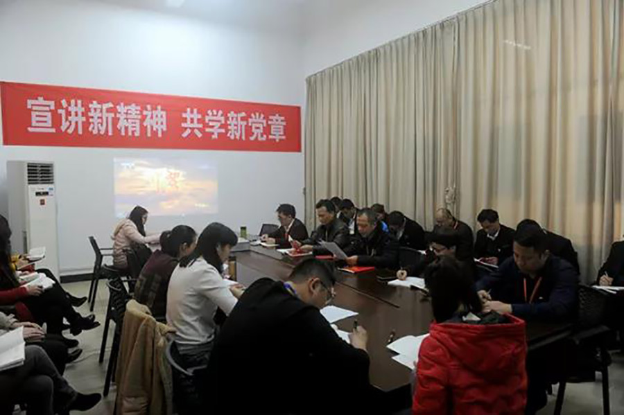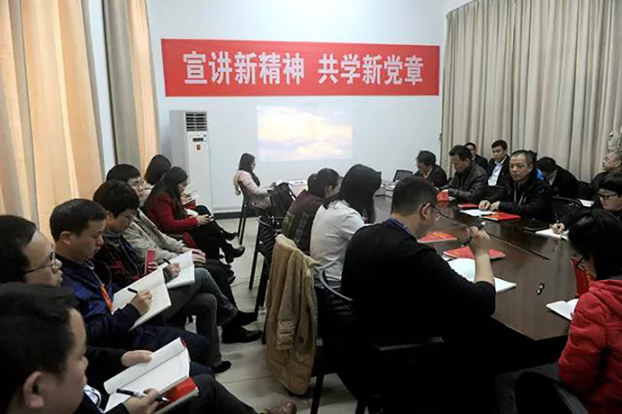 2018年2月28日上午,根據(jù)中共桂林市臨桂新區(qū)工作委員會關于學習貫徹十九大精神學習培訓工作方案的安排,新城投資集團黨支部組織全體黨員、入黨積極分子對新《黨章》進行宣講學習。新城投資集團黨支部書記周道林做《宣講新精神 共學新黨章》主題宣講,對集團公司貫徹落實黨的十九大精神,學習領會新《黨章》規(guī)定,把新《黨章》規(guī)定落實到各項工作中等方面工作做出安排。