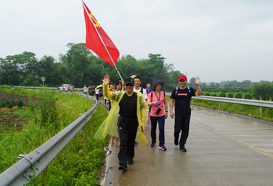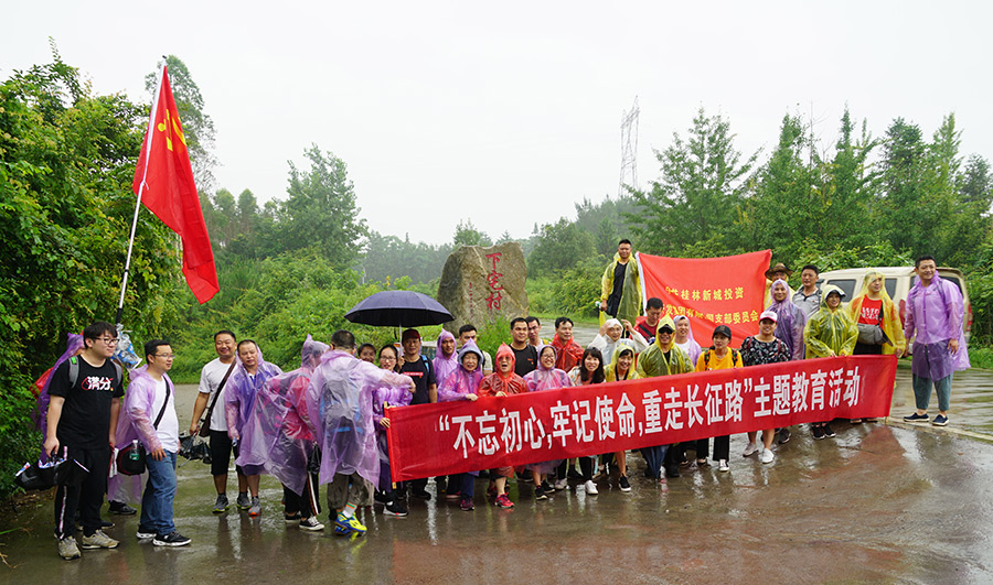 在中國共產(chǎn)黨建黨98周年之際,為進一步提升支部黨員的黨性修養(yǎng),緬懷革命先輩,牢記革命歷史,繼承和弘揚偉大的長征精神,6月27日,新城投資集團黨支部全體黨員組織了“不忘初心,牢記使命,重走長征路”主題黨日活動,來到全州縣紹水鎮(zhèn)沿著紅軍當年的足跡,追憶紅軍的光輝歲月,學習紅軍精神,開展重走長征路活動。臨桂新區(qū)工委委員、管委會副主任文杰,市紀委駐臨桂新區(qū)紀檢組副組長唐良平,新城投資集團黨支部書記、總經(jīng)理周道林以普通黨員身份參加活動。