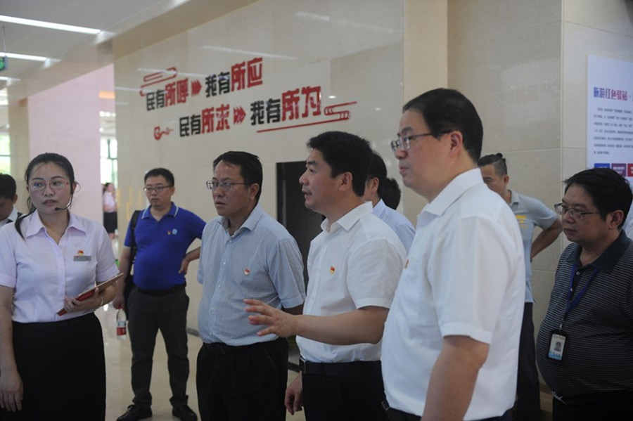 2019年7月1日,在中國共產(chǎn)黨建黨98周年到來之際,桂林市委副書記白松濤一行專程到桂林市黨群服務(wù)中心調(diào)研指導(dǎo)試運行情況。市委常委、組織部部長、市黨群服務(wù)中心建設(shè)工作領(lǐng)導(dǎo)小組組長彭東光陪同調(diào)研。