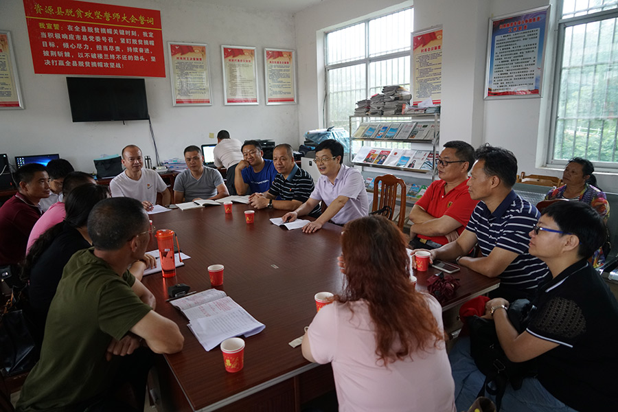 慰問(wèn)組在村委辦公室與資源縣組織部分管領(lǐng)導(dǎo)、兩水鄉(xiāng)鎮(zhèn)分管領(lǐng)導(dǎo)、煙竹村支書、村主任、市農(nóng)業(yè)局分管扶貧領(lǐng)導(dǎo)、派駐第一書記、派駐隊(duì)員見(jiàn)面并進(jìn)行座談,調(diào)研了解村組脫貧攻堅(jiān)任務(wù)和情況。唐標(biāo)明詳細(xì)詢問(wèn)了駐村工作隊(duì)員近期的工作、生活情況,并與大家共同探討、謀劃2019年產(chǎn)業(yè)脫貧工作的各項(xiàng)目標(biāo)和任務(wù)。唐標(biāo)明對(duì)兩名駐村隊(duì)員的工作給了充分的肯定,同時(shí)對(duì)下一步工作提出了三方面的要求:一是要團(tuán)結(jié),積極融入村兩委班子,服從村級(jí)管理,在工作上要維護(hù)村黨支部書記的統(tǒng)一領(lǐng)導(dǎo);二是多為村脫貧攻堅(jiān)想辦法、出思路,打好年度脫貧攻堅(jiān)戰(zhàn);三是統(tǒng)籌利用自身優(yōu)勢(shì),多為村級(jí)爭(zhēng)取扶貧項(xiàng)目。