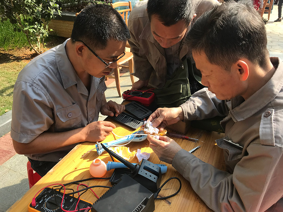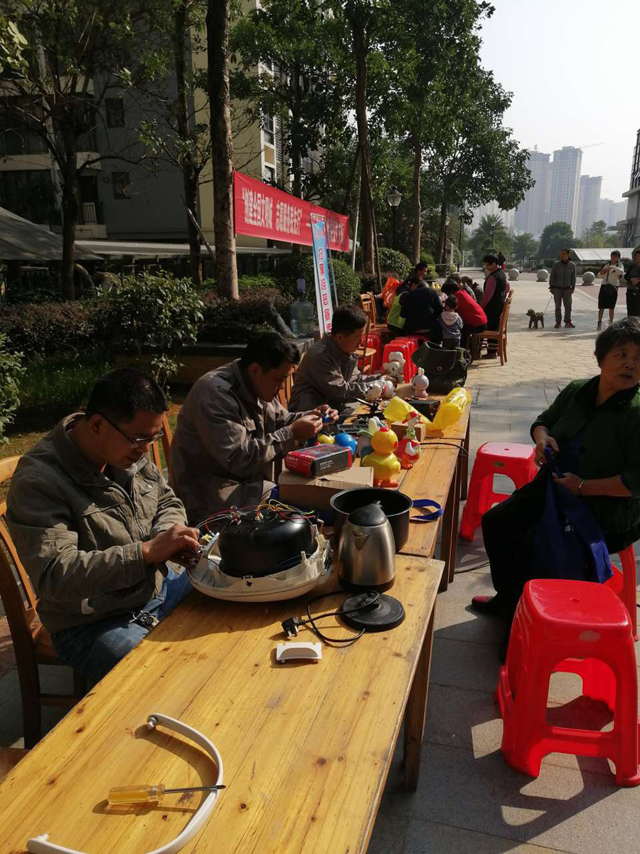 新城投資集團(tuán)黨員志愿者們?cè)诂F(xiàn)場開展“便民服務(wù)進(jìn)社區(qū)”活動(dòng),對(duì)居民送來的家電進(jìn)行故障診斷和免費(fèi)維修,各種飲水機(jī)、豆?jié){機(jī)、電飯煲、電水壺等小家電在志愿者手中紛紛運(yùn)轉(zhuǎn)起來,志愿者們認(rèn)真負(fù)責(zé)的態(tài)度和專業(yè)的維修技能獲得了居民們的一致好評(píng)。