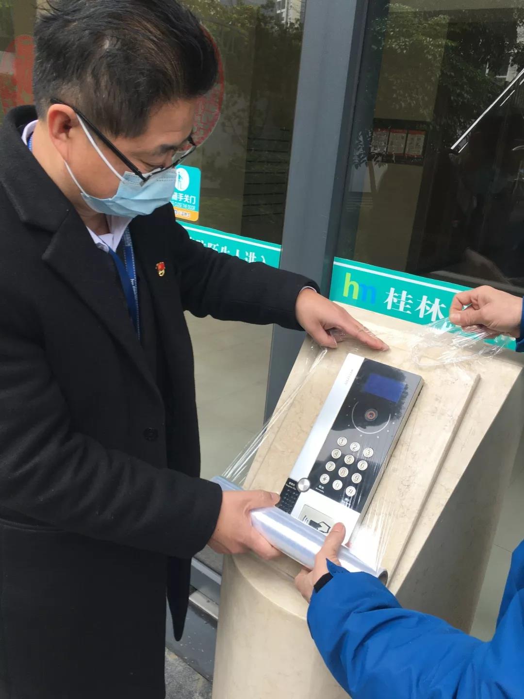 工程部在其部門負責人、共產(chǎn)黨員周成同志的帶領(lǐng)下,全員提前返崗。通過給小區(qū)所有入戶門對講系統(tǒng)及電梯內(nèi)按鍵穿上每天一換的保鮮膜“保護外套”、給每臺電梯內(nèi)裝上業(yè)主按鍵時使用的抽紙等方法,最大程度減少接觸病菌細菌的幾率,不留隱患,給業(yè)主創(chuàng)造一個健康、 安心的居家環(huán)境,為所有業(yè)主守住這道防疫防線。