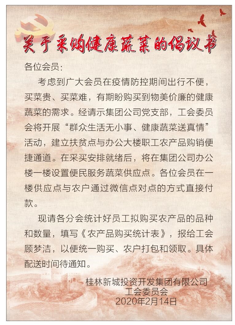 “你搶著菜了嗎?”已經(jīng)成為新冠肺炎疫情下,除“你搶著口罩了嗎?”外另一句流行的打招呼方式。而居家隔離、不敢出門、菜市場貨物短缺出現(xiàn)的買菜貴、買菜難等等問題隨之而來。集團(tuán)公司工會想職工之所想,始終關(guān)心職工冷暖,把“新鮮蔬菜配送到辦公樓”的想法模式孕育而生。在集團(tuán)黨支部的指導(dǎo)下,工會委員會主動聯(lián)系周邊鄉(xiāng)鎮(zhèn)的貧困農(nóng)戶,組織開展“群眾生活無小事、健康蔬菜送真情”點(diǎn)對點(diǎn)活動,即開通扶貧點(diǎn)農(nóng)戶的農(nóng)產(chǎn)品與辦公大樓職工的購銷便捷通道,這種做法不僅充分發(fā)揮了工會聯(lián)系群眾的橋梁紐帶作用,把密切聯(lián)系群眾的優(yōu)勢轉(zhuǎn)化為疫情防控的優(yōu)勢,而且還搭建起了一座防疫與扶貧的愛心橋,將“群眾利益無小事,一枝一葉總關(guān)情”的工會服務(wù)理念落在了實(shí)處。
