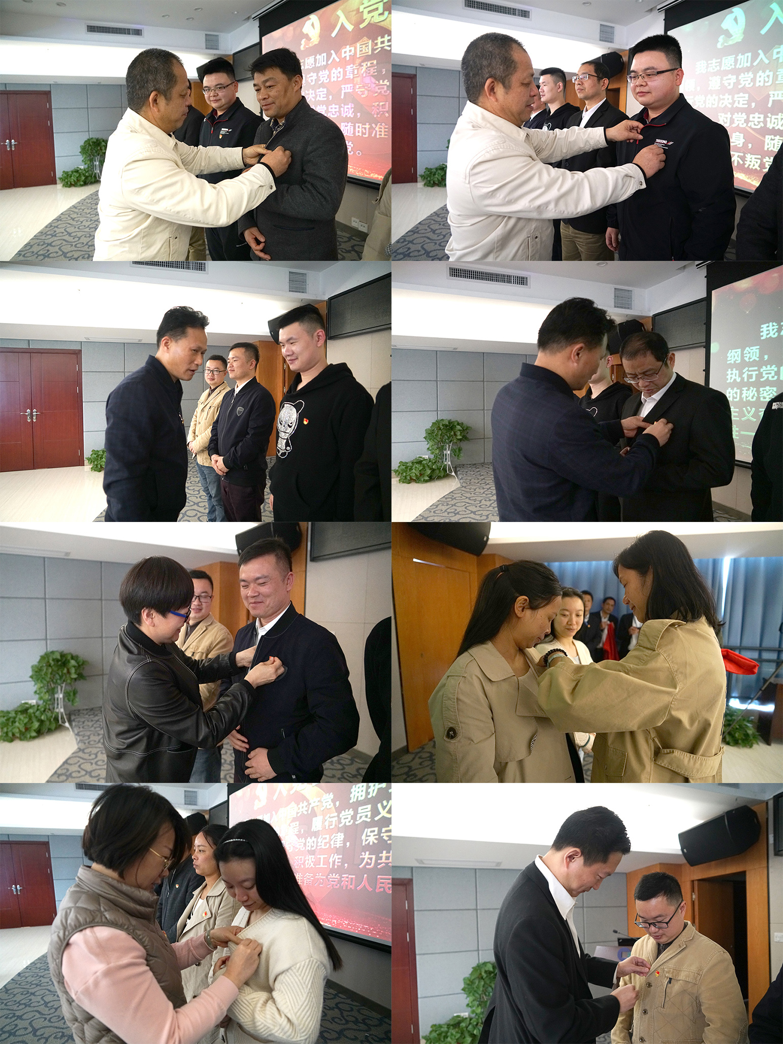 黨總支委員親手為10位預(yù)備黨員一一佩戴黨徽。