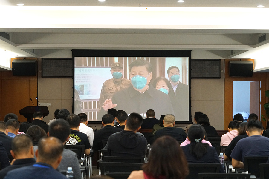 課后,全體黨員領導干部集體觀看了公益專題片《戰(zhàn)“疫”一線黨旗紅》。影片再現(xiàn)了新冠肺炎疫情暴發(fā)以來,在以習近平同志為核心的黨中央堅強領導下,各級黨組織和廣大黨員、干部聞令而動、身先士卒、沖鋒在前、英勇奮斗,在抗疫一線充分發(fā)揮戰(zhàn)斗堡壘作用、先鋒模范作用的先進典型和感人事跡場面。