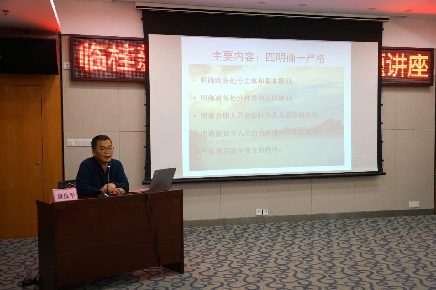 唐良平從《公職人員政務(wù)處分法》的背景和意義,以及政務(wù)處分的基本原則、適用對(duì)象、種類和程序等主要內(nèi)容進(jìn)行了全面深入的闡述,通過結(jié)合實(shí)際案例,對(duì)《公職人員政務(wù)處分法》的十大問題及法律條文進(jìn)行了重點(diǎn)解讀,提出學(xué)法用法關(guān)鍵在于實(shí)踐。