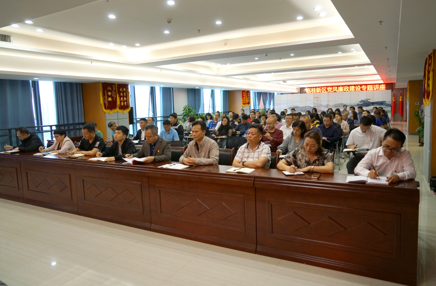 臨桂新區(qū)管委各部室負(fù)責(zé)人及人員、新城投資集團(tuán)班子成員及中層干部參加會(huì)議。