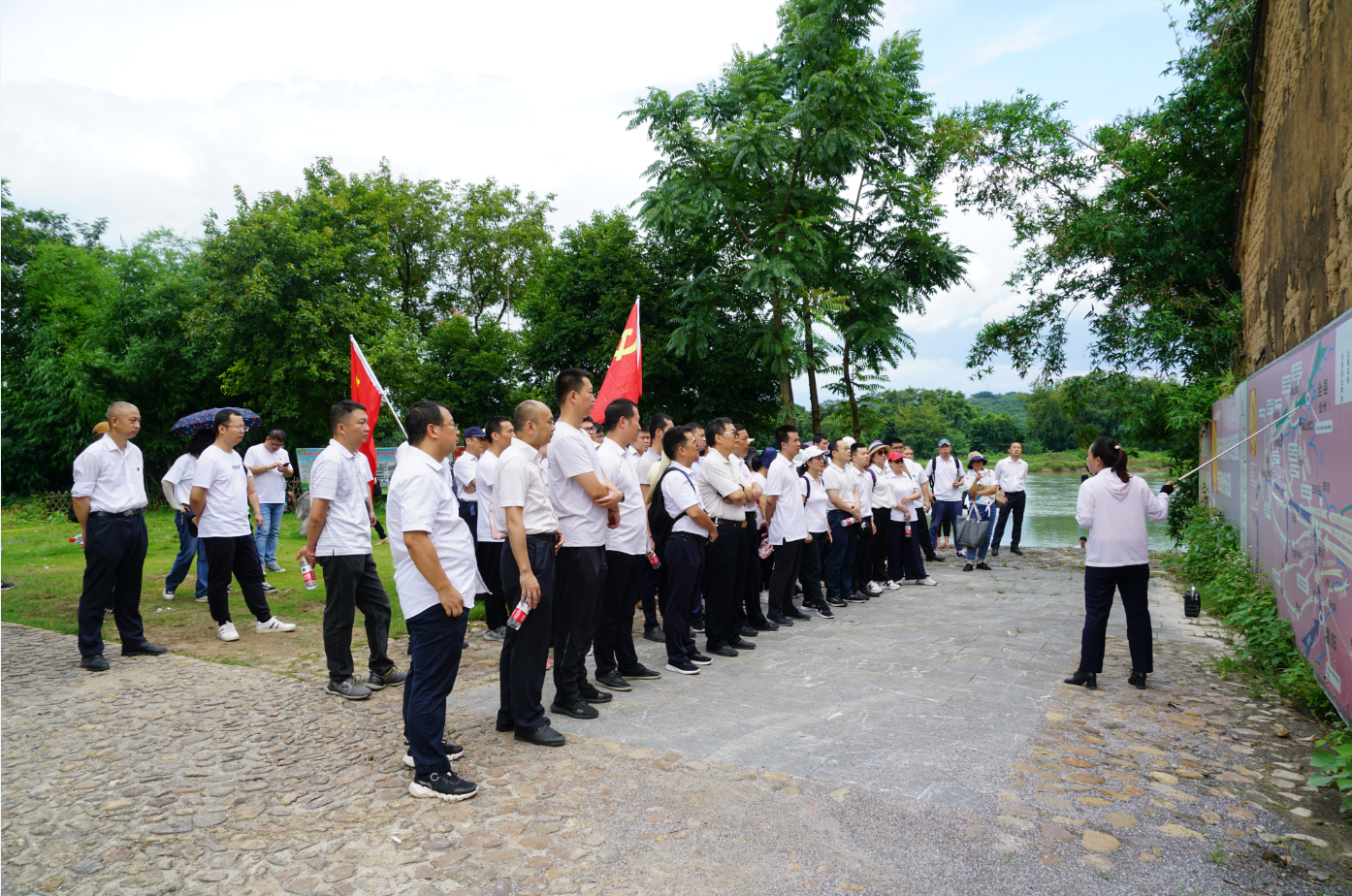 在湘江戰(zhàn)役渡江舊址,全體黨員上了一堂現(xiàn)場教學課。講解員還原湘江戰(zhàn)役各個渡口場景,黨員們被帶回到了那個戰(zhàn)火紛飛的年代,看見了被鮮血染紅的湘江,感受到革命先輩為理想前赴后繼,永不言棄的長征精神。