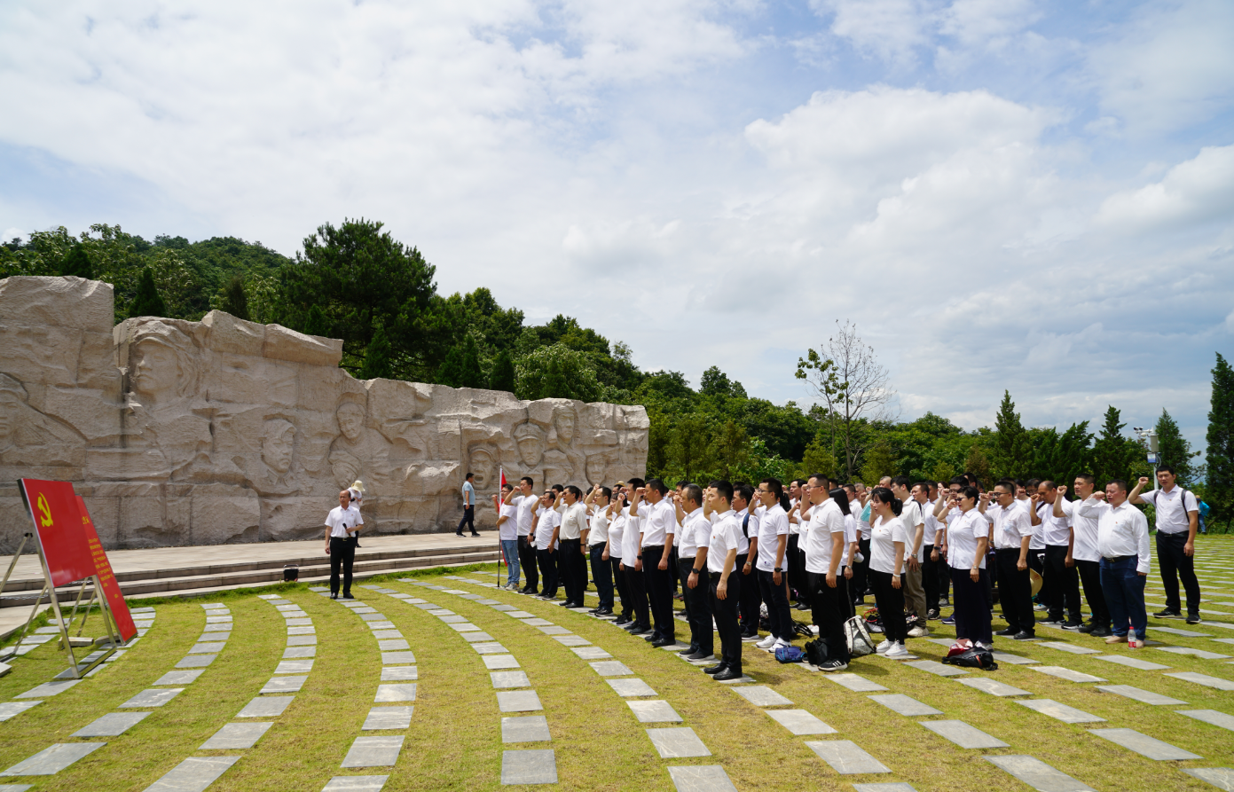 “一山一石一忠魂,一草一木一豐碑”。在紅軍長征湘江戰(zhàn)役紀念園憑吊廣場,“紅軍魂”雕塑巍然聳立,全體黨員向在湘江戰(zhàn)役中英勇犧牲的紅軍烈士默哀,敬獻花籃并三鞠躬,表達對革命烈士的深切緬懷和無限敬仰。面對鮮艷的中國共產(chǎn)黨黨旗,大家莊嚴列隊,重溫入黨誓詞,用錚錚誓言表達矢志不渝守初心、奮發(fā)有為擔使命的堅定信念。