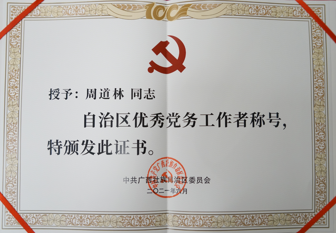 桂林新城投資集團(tuán)黨總支書記周道林榮獲“廣西壯族自治區(qū)優(yōu)秀黨務(wù)工作者”稱號(hào),并參加在桂林市會(huì)議中心小禮堂召開的廣西壯族自治區(qū)“兩優(yōu)一先”表彰大會(huì)桂林分會(huì)場電視電話會(huì)議。