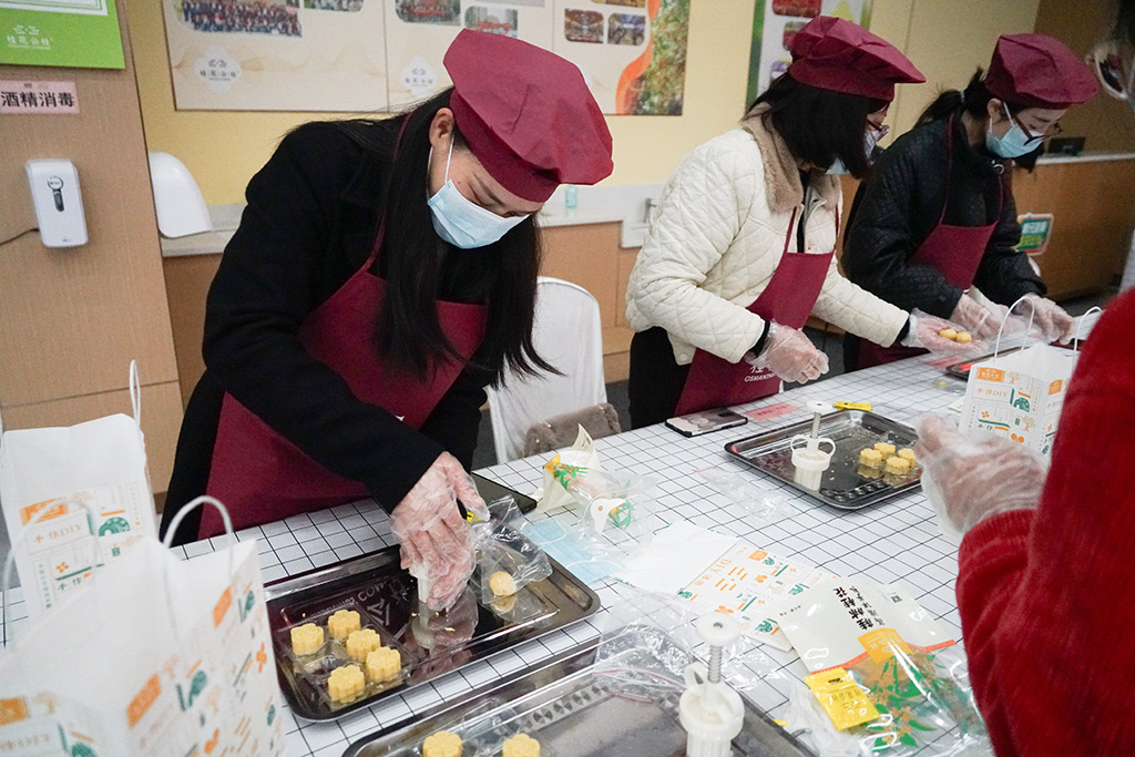 第一項(xiàng)活動(dòng)是動(dòng)手制作桂花糕。桂花糕在桂林已經(jīng)有近百年的歷史,因桂花得名,體現(xiàn)桂林歷史和傳統(tǒng)文化印記。大家手拿模具,在老師的指導(dǎo)下,有模有樣地動(dòng)手制作桂花糕,制作過(guò)程中時(shí)而向身邊人討教制作技巧,時(shí)而交換模具制作出不同的樣式,歡聲笑語(yǔ)中一個(gè)個(gè)芳香四溢的桂花糕躍然眼前,女職工們體驗(yàn)到了勞動(dòng)帶來(lái)的快樂(lè)愉悅。