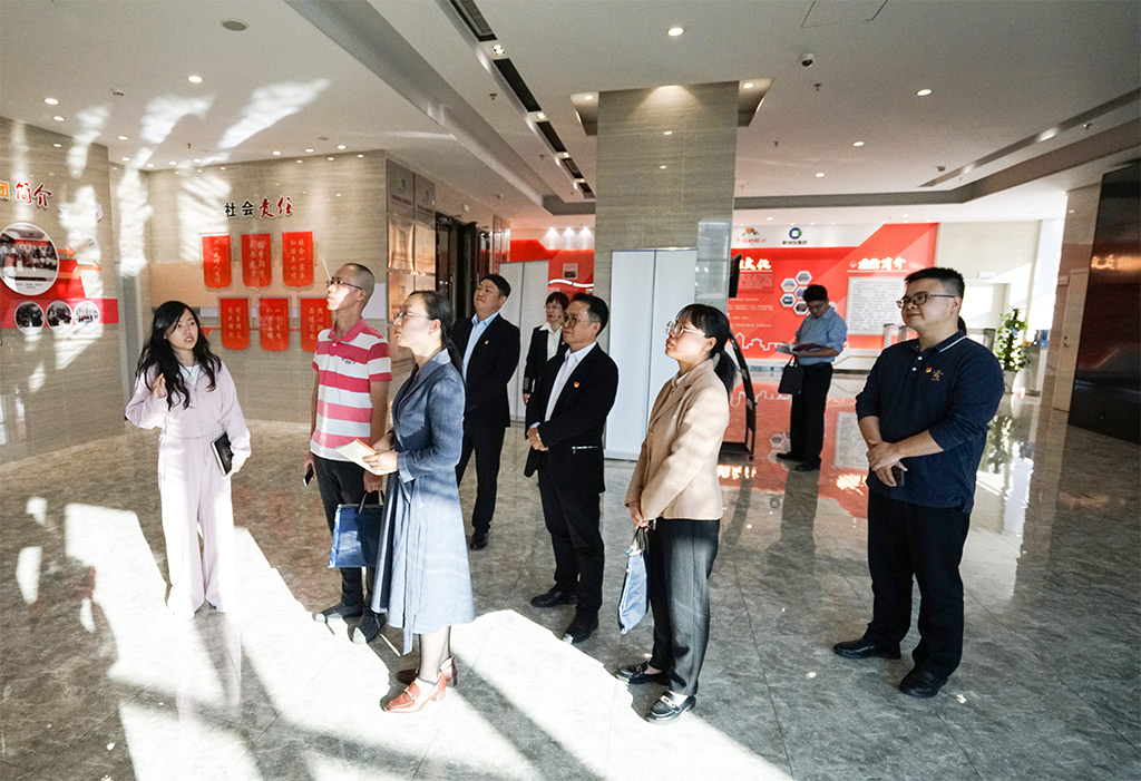 孫敏一行來到新城投集團(tuán)一樓,在“黨建小蜜蜂講解員”的引導(dǎo)講解下參觀了公司宣傳展示專區(qū),詳細(xì)了解公司的發(fā)展歷程、主要成就、“黨旗映勝地”黨建品牌集群及配套“11321”工作法。孫敏對新城投集團(tuán)在桂林新區(qū)建設(shè)作出的重要貢獻(xiàn)、取得的優(yōu)異成績表示稱贊。