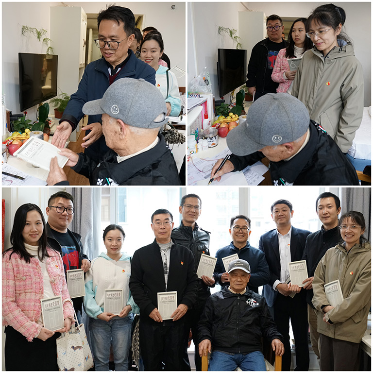 活動(dòng)圓滿結(jié)束后,吳仲先爺爺熱情邀請(qǐng)新城投集團(tuán)第三黨支部的志愿者們來(lái)到他的房間。大家圍在吳爺爺身邊親切交談,關(guān)心地詢問他的身體狀況和生活情況。吳爺爺親手把他編著的書籍——《與時(shí)俱進(jìn)論國(guó)是》贈(zèng)予每一位志愿者,并在書上寫下溫馨寄語(yǔ)。這些飽含深情的親筆贈(zèng)言,流露出吳爺爺堅(jiān)強(qiáng)的意志、奉獻(xiàn)的精神和始終如一的初心,讓在場(chǎng)的每個(gè)人都深受感動(dòng)。