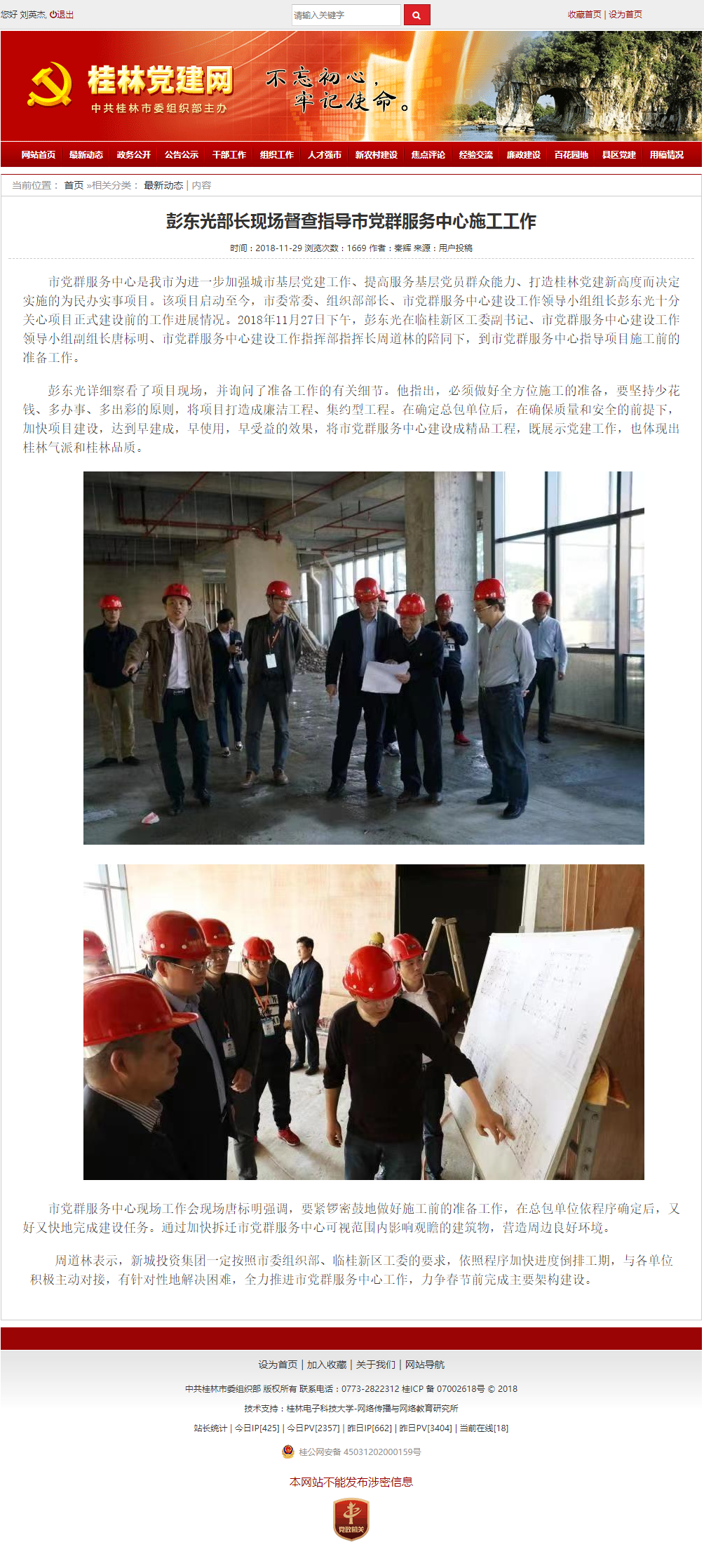 桂林黨建網-彭東光部長現(xiàn)場督查指導市黨群服務中心施工工作