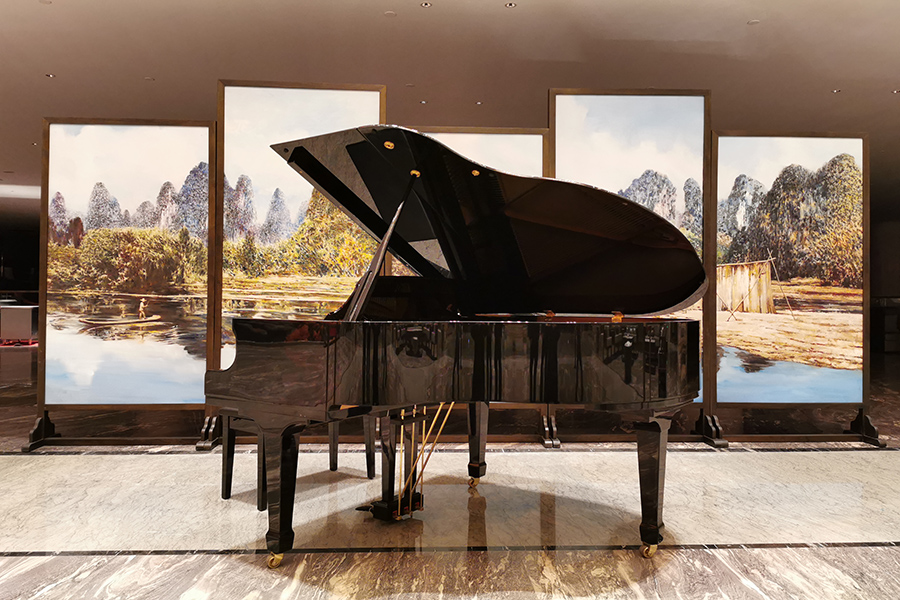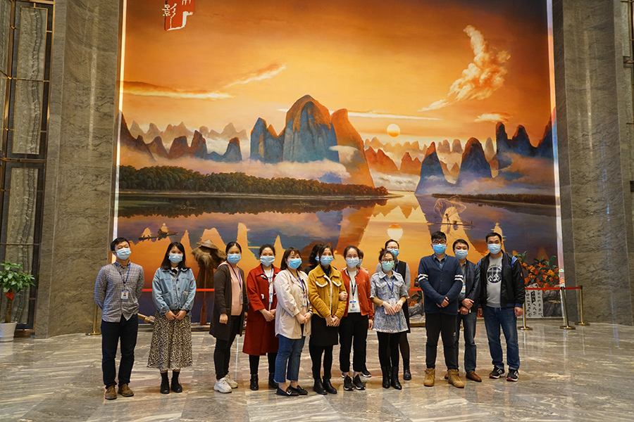 試業(yè)的桂林宏謀大酒店,充分展現(xiàn)現(xiàn)代藝術(shù)酒店的低調(diào)、大氣、有內(nèi)涵。巨型的漓江黃布倒影油畫、璀璨的銅鼓吊燈、云卷的砂巖壁畫……大家被名家友情布展酒店的字畫、雕塑精品的獨(dú)特文化氛圍感染,感嘆酒店有深度的藝術(shù)魅力。參觀的員工紛紛駐足拍照,發(fā)朋友圈廣泛宣傳藝術(shù)的宏謀、文化的酒店。