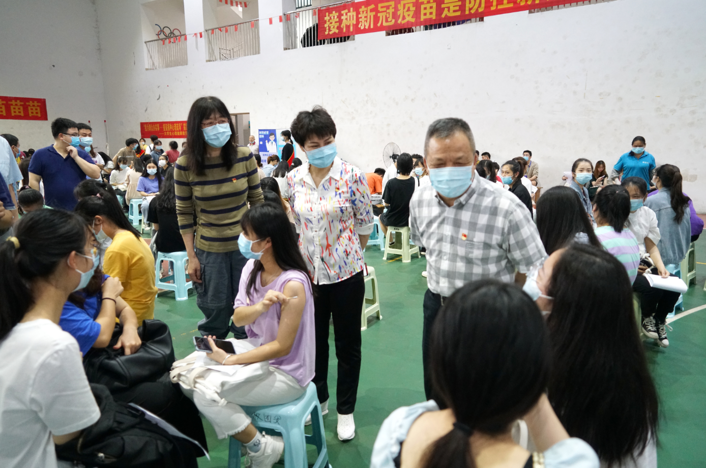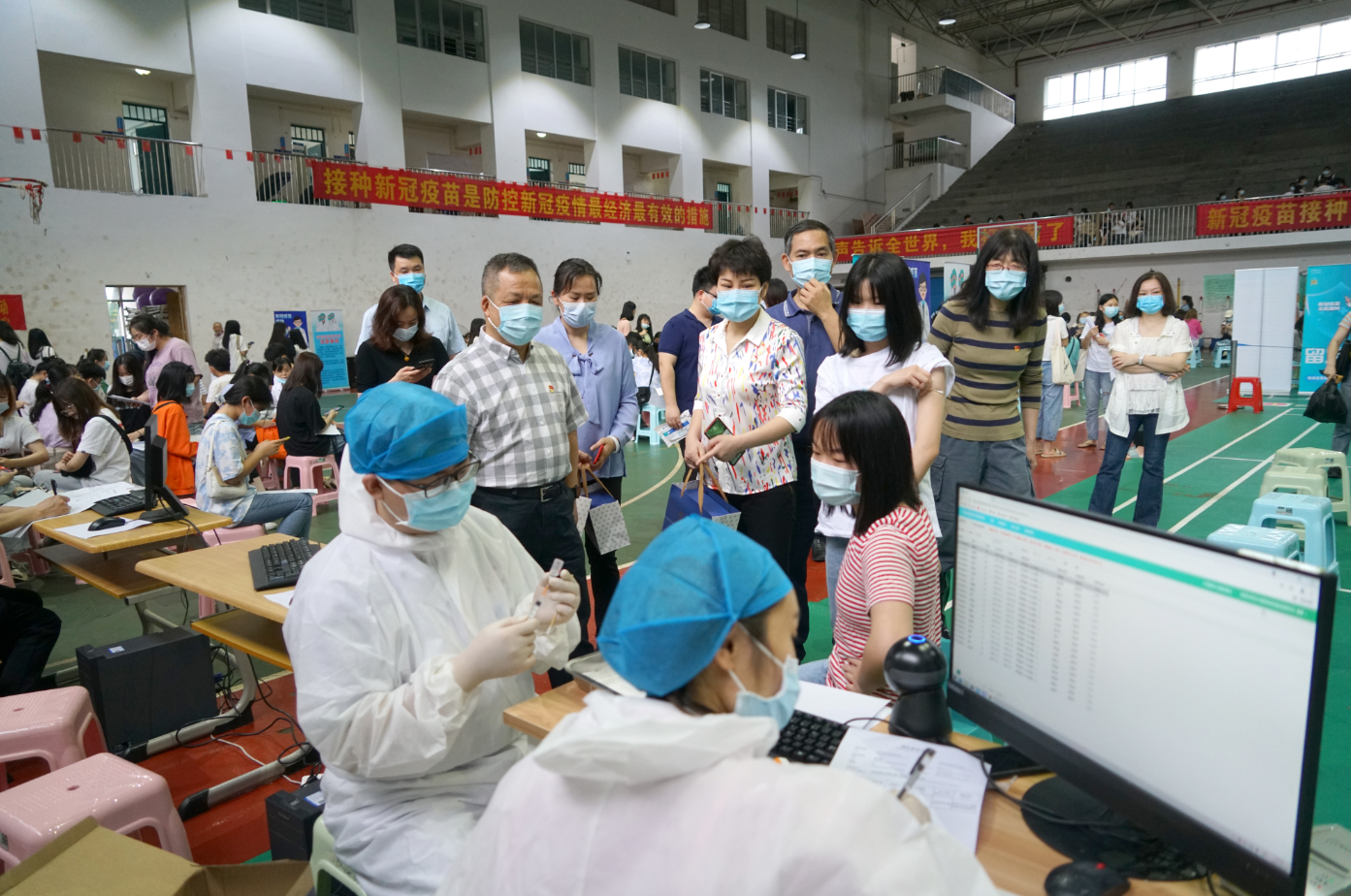 “寢室同學(xué)都打過了嗎?”“同學(xué)們接種疫苗后有什么不舒服感覺嗎?”在留觀區(qū),周道林一行向同學(xué)們了解接種疫苗之后的情況?!皩嬍彝瑢W(xué)都打了!”“接種疫苗的時候不是很疼”“沒有出現(xiàn)身體不適”,接種完疫苗的同學(xué)神色輕松地交流著接種的感受。場館內(nèi),測溫、知情同意書領(lǐng)取與填寫、醫(yī)務(wù)問詢、身份證信息核對與錄入、疫苗接種各個環(huán)節(jié)有條不紊地推進(jìn)。
