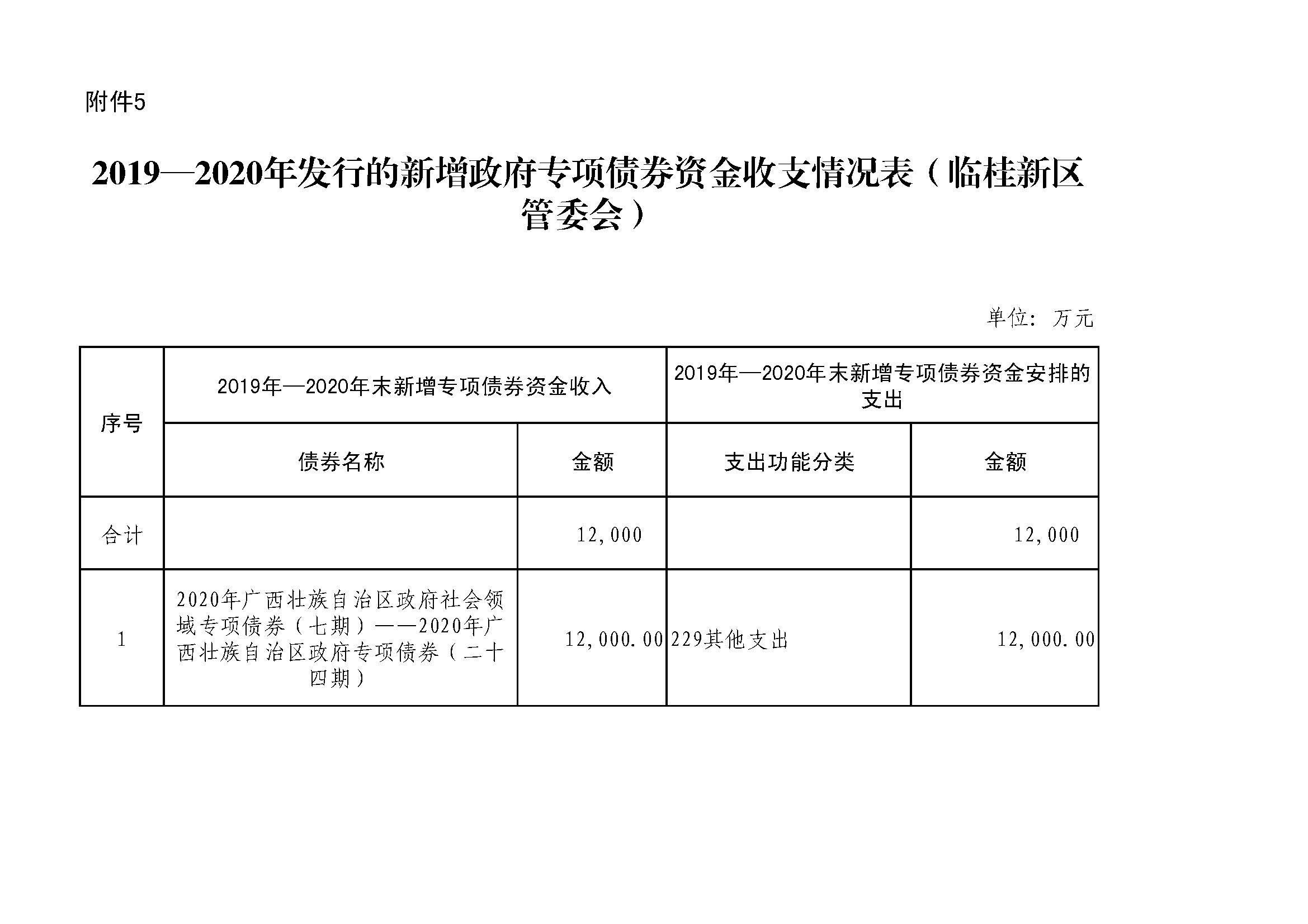 桂林市本級2019年--2020年末發(fā)行的新增地方政府專項債券情況表(臨桂新區(qū))