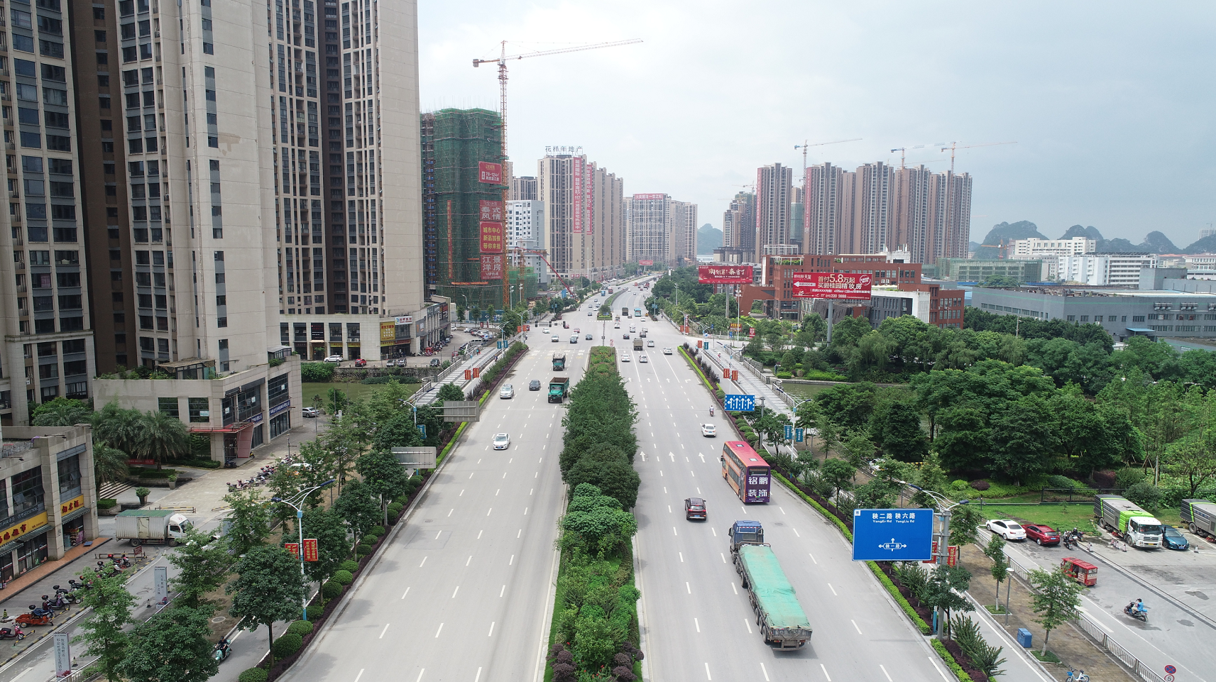 作為連接桂林新區(qū)和經(jīng)開區(qū)的交通大動(dòng)脈,西城大道南延長線(臨蘇路口至華為項(xiàng)目用地段)提升改造工程是桂林市重大項(xiàng)目,榮獲了廣西壯族自治區(qū)2021年(上半年)建設(shè)工程施工安全文明標(biāo)準(zhǔn)化工地等榮譽(yù)。項(xiàng)目起點(diǎn)為秧二十七路,終點(diǎn)與秧十三路相交,道路全長2.1公里,城市主干路,紅線寬60米,雙向六車道,設(shè)計(jì)速度50公里/小時(shí)。配套建設(shè)給排水、電力、電信、燃?xì)獾裙芫€工程、路燈、綠化及交通安全等附屬工程,總投資2.59億。項(xiàng)目的順利竣工進(jìn)一步完善了臨桂新區(qū)交通路網(wǎng),改善了周邊居民生活環(huán)境,滿足了臨桂區(qū)經(jīng)濟(jì)發(fā)展需要。