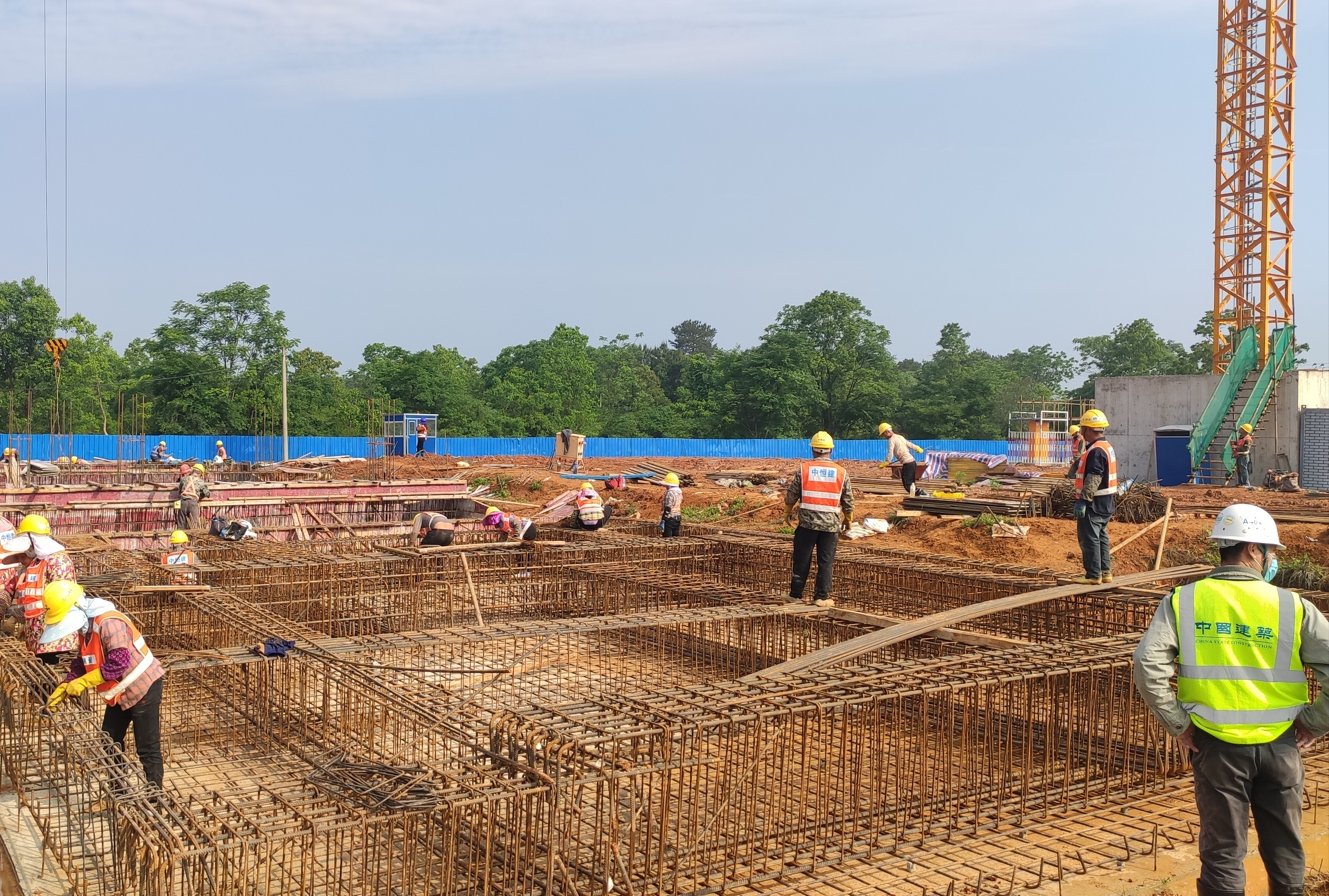 桂林學(xué)院7棟學(xué)生宿舍項(xiàng)目時(shí)間緊任務(wù)重,項(xiàng)目要在開學(xué)前交付使用,建設(shè)期間又逢“桂林的端午雨季”,為更好地發(fā)揮黨組織在項(xiàng)目上的促進(jìn)作用,集團(tuán)黨總支與項(xiàng)目參建單位共同組建了臨時(shí)聯(lián)合黨支部,以黨建為引領(lǐng),做到“項(xiàng)目建在哪里,黨旗就飄揚(yáng)在哪里,黨組織戰(zhàn)斗堡壘作用就發(fā)揮到哪里”,黨支部戰(zhàn)斗堡壘和黨員先鋒模范作用得到充分發(fā)揮。2022年4月項(xiàng)目全方位施工,“5.1”假期現(xiàn)場(chǎng)作業(yè)“不打烊”,現(xiàn)場(chǎng)施工人員每日兩班日夜兼程施工,工程全面推進(jìn),確保按時(shí)按質(zhì)按量完成各施工節(jié)點(diǎn)建設(shè)任務(wù)。目前,基礎(chǔ)工程已完成80%,基礎(chǔ)土方回填工程量大,受雨季天氣影響較大,事關(guān)上部結(jié)構(gòu)施工節(jié)點(diǎn),項(xiàng)目團(tuán)隊(duì)緊跟基礎(chǔ)工程的腳步開始土方回填工作,嚴(yán)保工期。