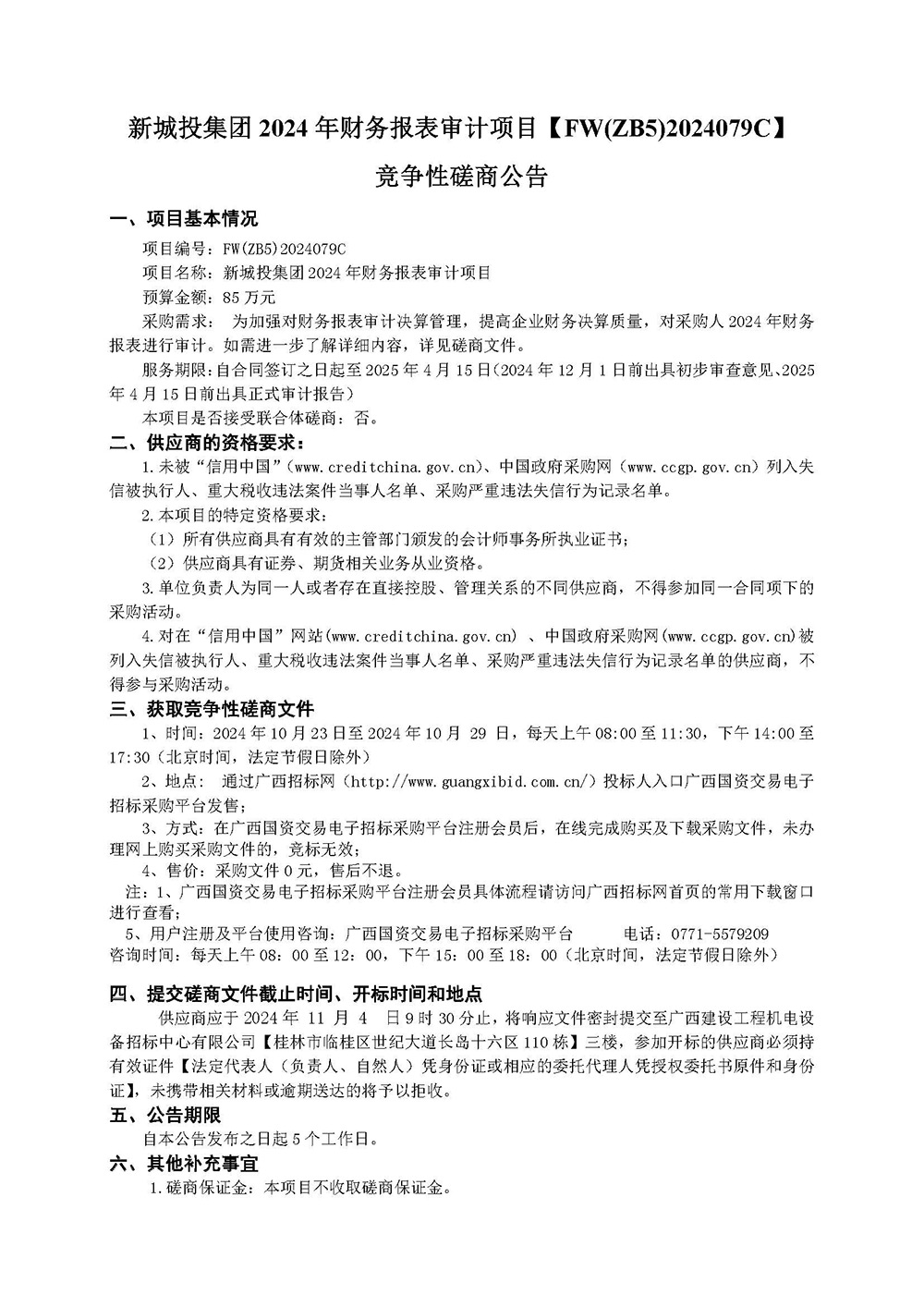 新城投集團(tuán) 2024 年財(cái)務(wù)報(bào)表審計(jì)項(xiàng)目【FW(ZB5)2024079C】 競(jìng)爭(zhēng)性磋商公告
