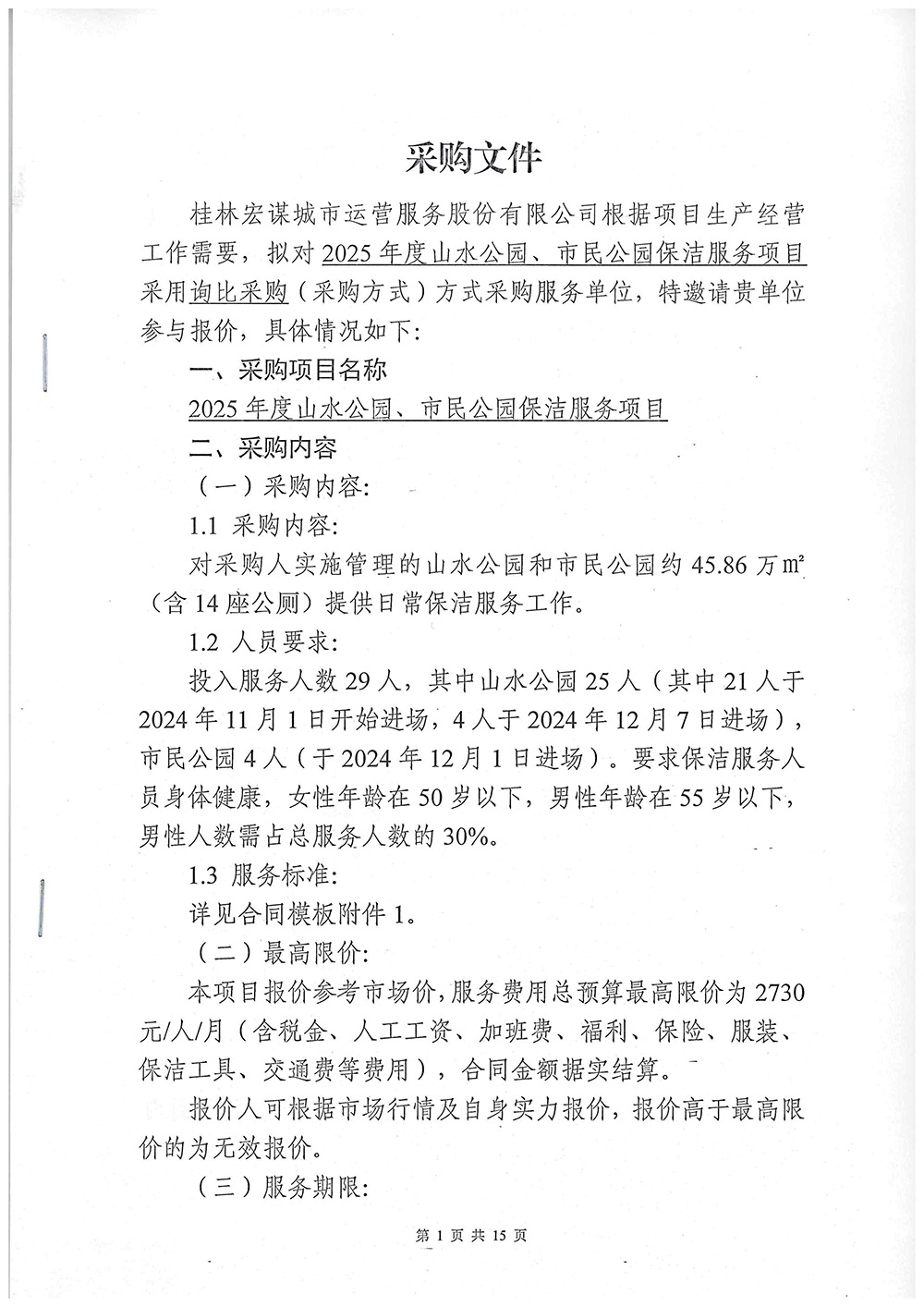 2025年度山水公園、市民公園保潔服務(wù)項目采購文件
