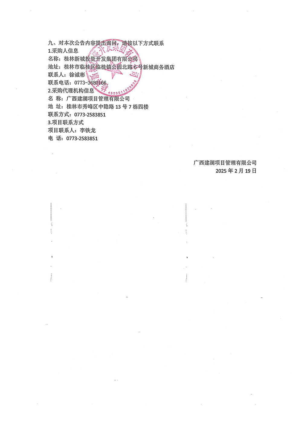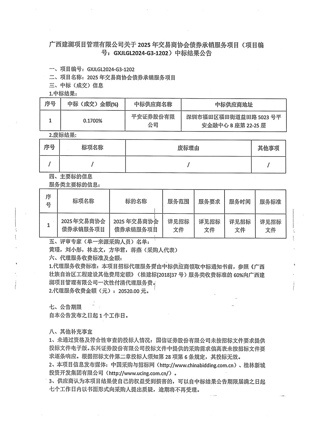廣西建瀾項目管理有限公司關(guān)于2025年交易商協(xié)會債券承銷服務(wù)項目(項目編號:GXJLGL2024-G3-1202)中標(biāo)結(jié)果公告