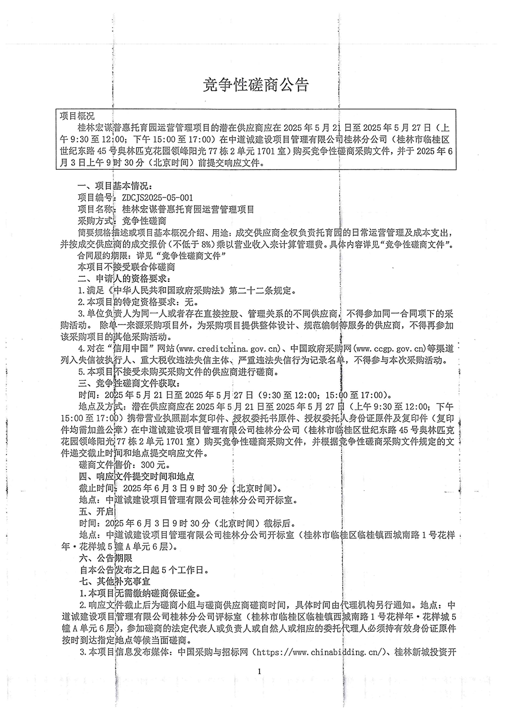 桂林宏謀普惠托育園運營管理項目競爭性磋商公告